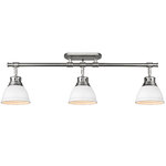 The Duncan Semi Flush Adjustable Track Light provides a stylish focal point that features a simple, classic silhouette with fully rotating shades. Available with a variety of painted or plated shade options. Swivels on the fixtures maneuver to a 90 degree angle. UL listed. Suitable for wet locations.
