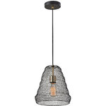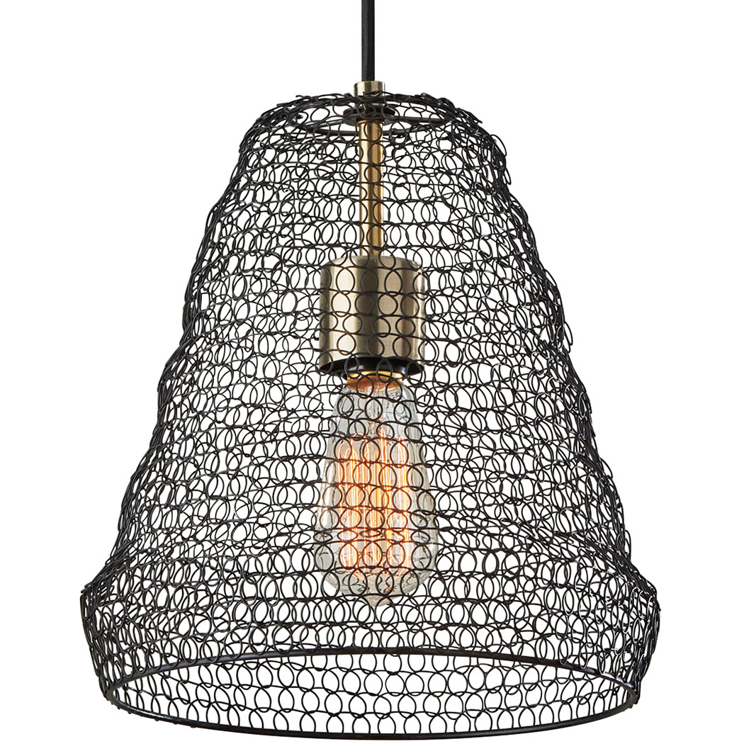 The Sheridan Pendant brings a touch of industrial styling to any space, featuring a wire mesh shade, black canopy, and brass accents. This fixture can be installed on its own or in a group of multiple pendants for a striking visual effect.
