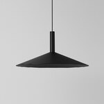 The Altura Pendant brings a clean look with hints of industrialism to your interior space. The wide cone shaped shade rests on a slim metal tube and has a glass diffuser that reflects light downward. Available with a Matte Black shade and Matte Black canopy. Includes power supply which fits inside canopy.