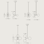The Veer Pendant features four illuminated shades of beautiful handblown glass mounted on a brass structure and stem. The 14 inch size features 4.5 inch sphere shades, the 19 inch size features 7 inch spheres, and the 15.5 inch size features 6 inch ellipsoid shades.