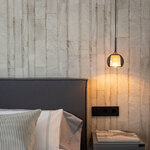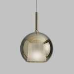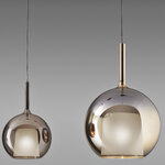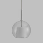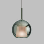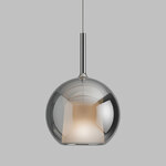 The Glo Pendant brings a clean elegance to your interior space. The striking mirroring outer glass glows with transparency when lit by the inner sandblasted glass. Canopy is Matte Titanium.