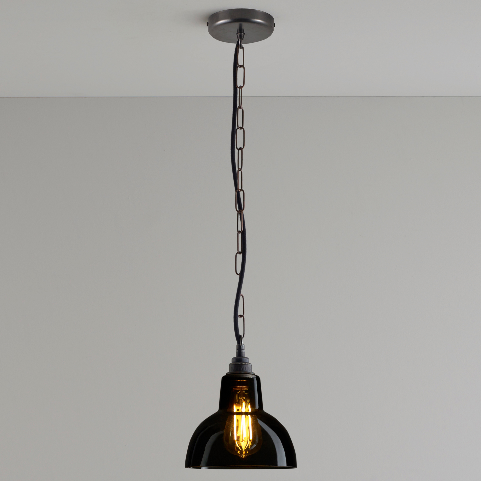The Glass York Pendant is inspired by Davey's traditional spun reflectors. The blown glass dome shape shade reflects light beautifully across your room. Available in two sizes.