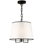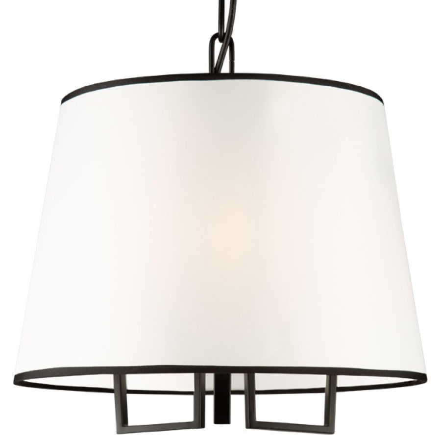 The Coco Pendant is a versatile fixture with a transitional design that will complement a variety of decor styles. The flat angular arms lend a contemporary, geometric edge, while the tapered linen hardback shade showcases a more traditional influence. The edges of the shade are finished with a black trim to complete the neat, clean-lined look.