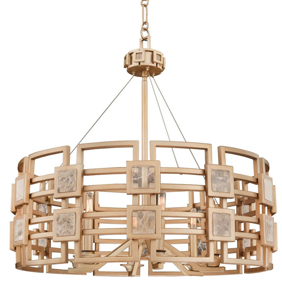 Rock crystal sets off the modern hand-crafted frame of the Metropolis Pendant. A modern gold finish was chosen to make it a true stand out for any room.