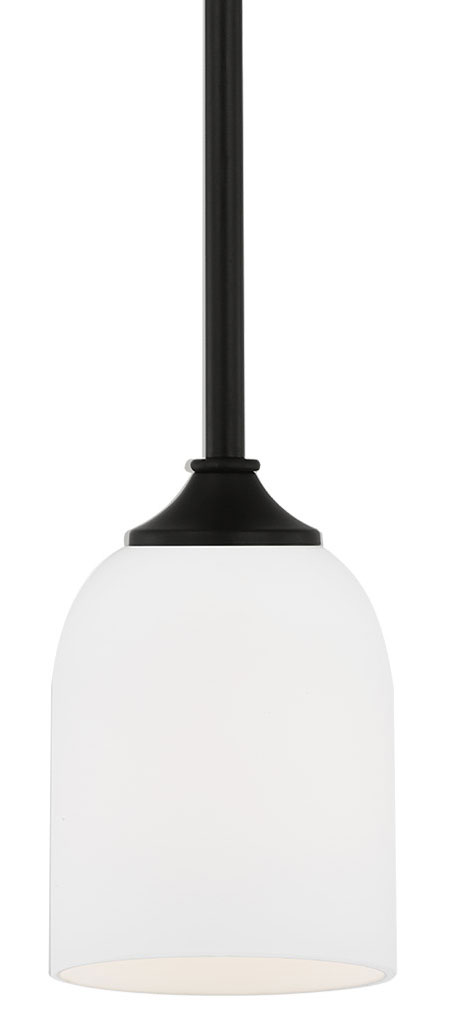 The Emile Pendant brings a clean, contemporary look to your interior space. The smooth frame holds a glass diffuser that is etched on the outside and white on the inside, casting warm shadows of light across your room.