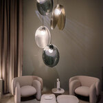 The Ama Pendant features an oblong crystal diffuser and globe shaped LED light source that evokes the image of a mussel clutching a treasured pearl. The pendant's crystal portions are crafted through a process developed in-house by Bomma's skilled artisans in which layers of heated glass are gradually melted into a conical mold and then precisely cut into shape. This process results in a rich texture and slight irregularities and variations that indicate the piece's unique craftsmanship. Includes Universal driver dimmable with TRIAC, ELV and 0-10V dimmers.