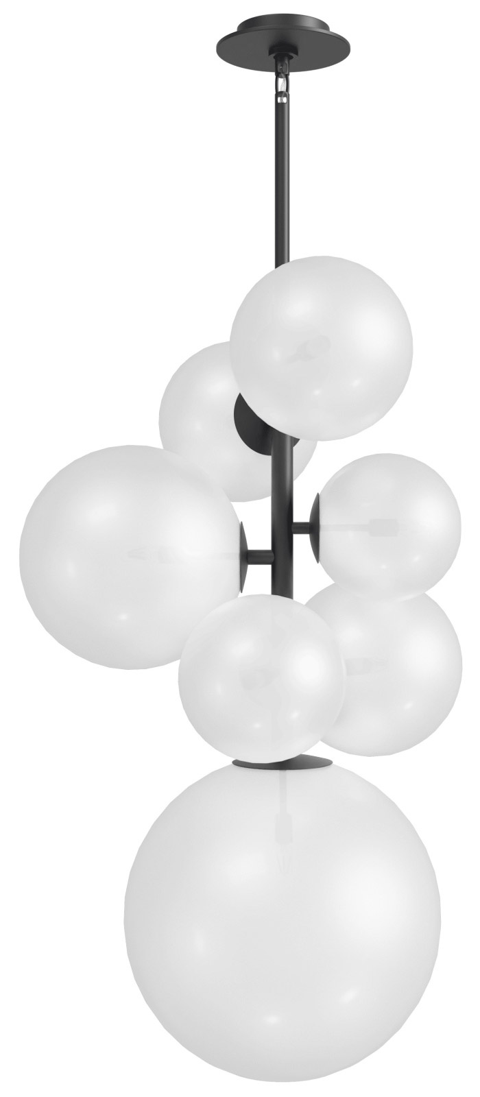 The Delilah Vertical Pendant infuses your space with mid-century modern charm. Featuring a geometric arrangement of glass globes in varying sizes, each perched at the end of sleek arms, this fixture casts warm, dynamic shadows that enhance the ambiance of your room.