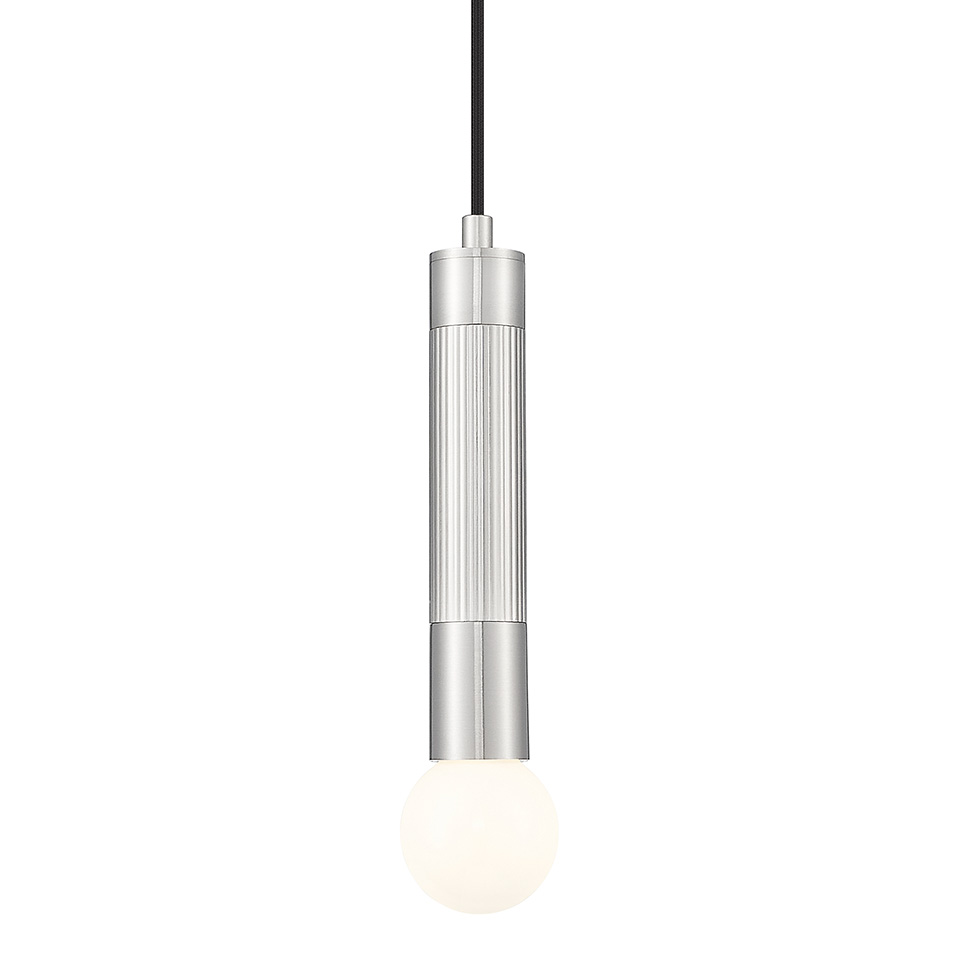 Sleek and precise, the Stari Pendant is a minimalist design that provides an ambient glow over any space. The metal cylinder features vertical groves for added texture, highlighting a simple bulb. Use as a solo standalone or in clusters for dramatic effect.