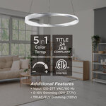 The Oberon Color-Select Pendant features an elegant twisting ring of light. An aluminum channel is fitted with an LED that provides soft illumination in all directions. Perfect for kitchen or dining room. LED color-selectable options at install include include 2700K, 3000K, 3500K, 4000K, and 5000K.