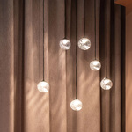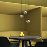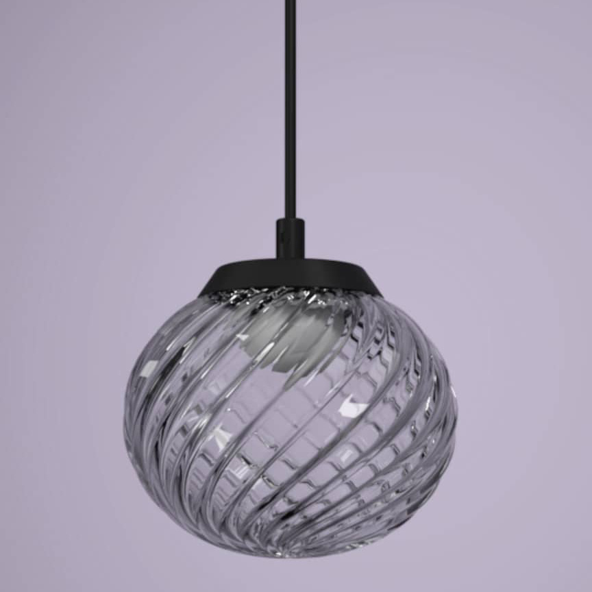 The Inside Pendant features a stunning hand-blown glass globe. Twisted lines trace the glass surface, diffusing and spreading light in a gentle pattern. Hang as a solo piece or in clusters for dramatic effect.