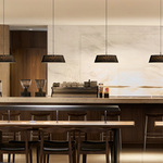 The Halo Pendant is a sleek update to a classic drum silhouette. Featuring an integrated LED ring with excellent color rendering, this pendant creates a relaxing environment that mimics natural sunlight. The finely pleated fabric shade softens the modern edge and helps to diffuse the light for glare-free illumination. Perfect for a kitchen or dining room.