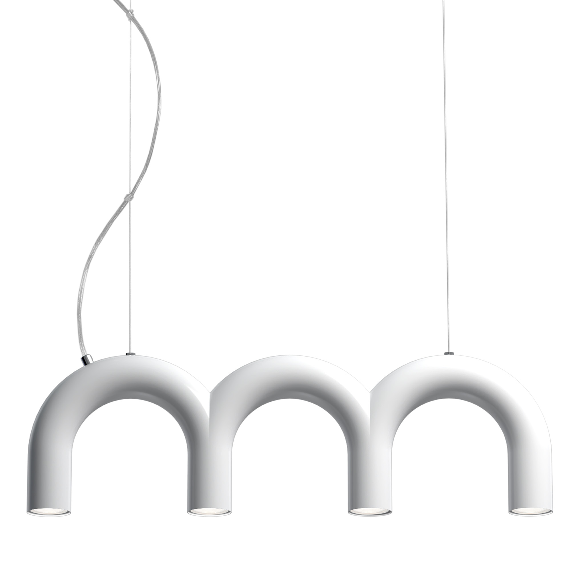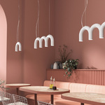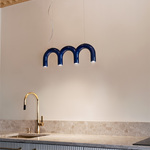 The Arch Triplette Pendant playfully distills elements of classic architecture into a modern form. A repeating arch creates a linear piece, providing ample lighting for task surfaces below. Use in a kitchen, dining room, or anywhere you need a vibrant, modern touch.