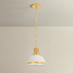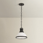 The retro-inspired Pinesbridge Pendant takes a classic RLM silhouette and reimagines it with geometric details. A large opal shiny glass shade is paired with a mesmerizing holophane glass diffuser featuring textural grooves. Machine-cut perforations around the top of the pendant add an industrial edge.