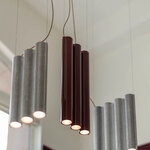 The Silo 3SB Pendant offers a theatrical but sleek look thanks to its array of extruded aluminum cylinders. Silo's curving shape creates a rhythmic expression that adds a contrast to the pendant's rigid aluminum construction. Silo is available with Downlights only, or with 3 Downlights and a single Uplight in the central cylinder to create a dramatic lighting effect. ELV / 0-10V dimmable.