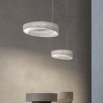 The Anel Pendant combines volumes and lines to define a unique personality. Two concentric rings made of painted stainless steel mesh surround the LED light source, and a ridged vertical texture adds an intriguing visual accent. Understated but elegant, Anel will lend a sophisticated presence to any interior.