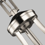 The Hanford Bowl Pendant features transitional styling that is evident in its elegant symmetry articulated by long, sweeping arms. Can be mounted with glass facing up or down. Available in Satin Etched glass and a Bronze or Brushed Nickel finish with LED or incandescent lamping options. Includes 6 feet of wire and 3 feet of chain to customize length. 5 inch diameter round canopy.