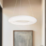The Cumulus Pendant floats in a single endless loop into your interior space. The slim acrylic ring houses the light for a warm illuminating glow across your room. Suitable for Sloped Ceilings.