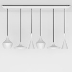 The Beat LED Linear Multi Light Pendant offers a bold statement featuring a collection of intriguingly shaped metal shades hung in a linear arrangement that will add a distinct graphic touch to any space. Available finished in Brass, Black, or White with a hammered brass interior, or in Aluminum with a hand-brushed and hand-spun finish inside and out.