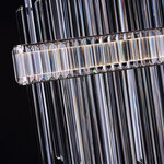 Pioveres avant-garde light sculpture celebrates individualism with a futuristic body adorned in random crystal curtains. This unique piece features hexagonal solid crystal rods between mirror-polished stainless plates, creating an unparalleled visual spectacle.