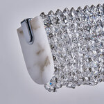 Drawing inspiration from a necklace holder, the Durant Island Light makes an exquisite addition to a long, slender kitchen island or an elegant dining room. Each end is adorned with genuine Alabaster endcaps, introducing a delightful mix of materials. Constructed from high-quality Steel, adorned with Firenze Crystals, and accented with Natural Alabaster Stone, this fixture would also add a touch of sophistication to her walk-in closet.