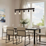 The Menlo Park Linear Chandelier brings an updated, contemporary look to a classic style. The smooth lineal frame is complemented with cylindrical glass that casts warm shadows of light across your room.