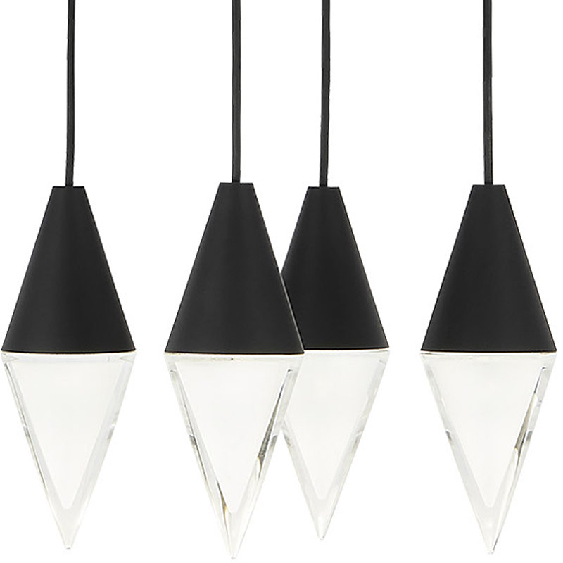The Turret Chandelier is a modern suspension of lights that brilliantly illuminate your space while minimizing glare. Each light is a clear crystal optic that tapers elegantly to a point, complemented by a metal cone top. Hang them at a uniform level or stagger them in height for a dramatic effect. This chandelier makes an elegant contemporary statement in your entryway, living room, or dining area.