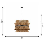 The Thurlo Large Pendant embodies modern elegance and bohemian chic, with its cinched drum silhouette accented with a metal band, and natural abaca paper rope hand-wrapped around the two-layer frame. The abaca filters the light and evokes a tropical beach, creating a relaxing, inviting ambiance.