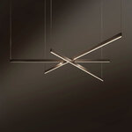 The Fly Multiple Pendant makes a sleek modern statement with its slim metal arms lined with LED strips. Light is cast both upward and downward, providing soft ambient illumination. The arms can be adjusted to create your own unique composition. This contemporary piece is suitable for a range of spaces, including foyers, dining areas, and living rooms. Phase cut/TRIAC dimmable.
