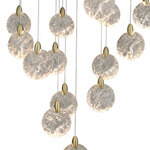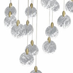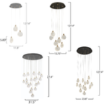 The Snowflake Color-Select Chandelier is a masterpiece of elegance, featuring rock-style cut glassware that glistens like frosted crystals, illuminated by energy-efficient LED lighting. Delicate brass holders cradle each glass piece, all suspended from a matte black canopy that adds a dramatic contrast. Its thoughtful design includes a three way color-select switch, allowing you to choose between warm, neutral, or cool color temperatures (3000K, 4000K, 6000K), and the dimmable functionality lets you tailor the ambiance to perfection. The easily adjustable wires ensure a seamless fit for any ceiling height, making this chandelier as versatile as it is enchanting.