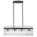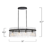 The Ava Island Light enchants with its delicate arrangement of circular glass rods, elegantly suspended on a sleek black frame. Its versatile design harmonizes beautifully with both circular and rectangular tables, adding a touch of refined glamour to any room.