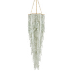 Like its namesake, the Verre de Mer Large Chandelier evokes the serene energy of a day at the beach. Tiers of cascading sand-blasted glass are hand-cut from recycled bottles to resemble seaglass. Each piece is attached to the fluted frame by hand. A contemporary gold finish adds an elevated touch.