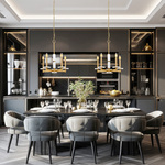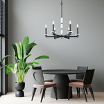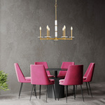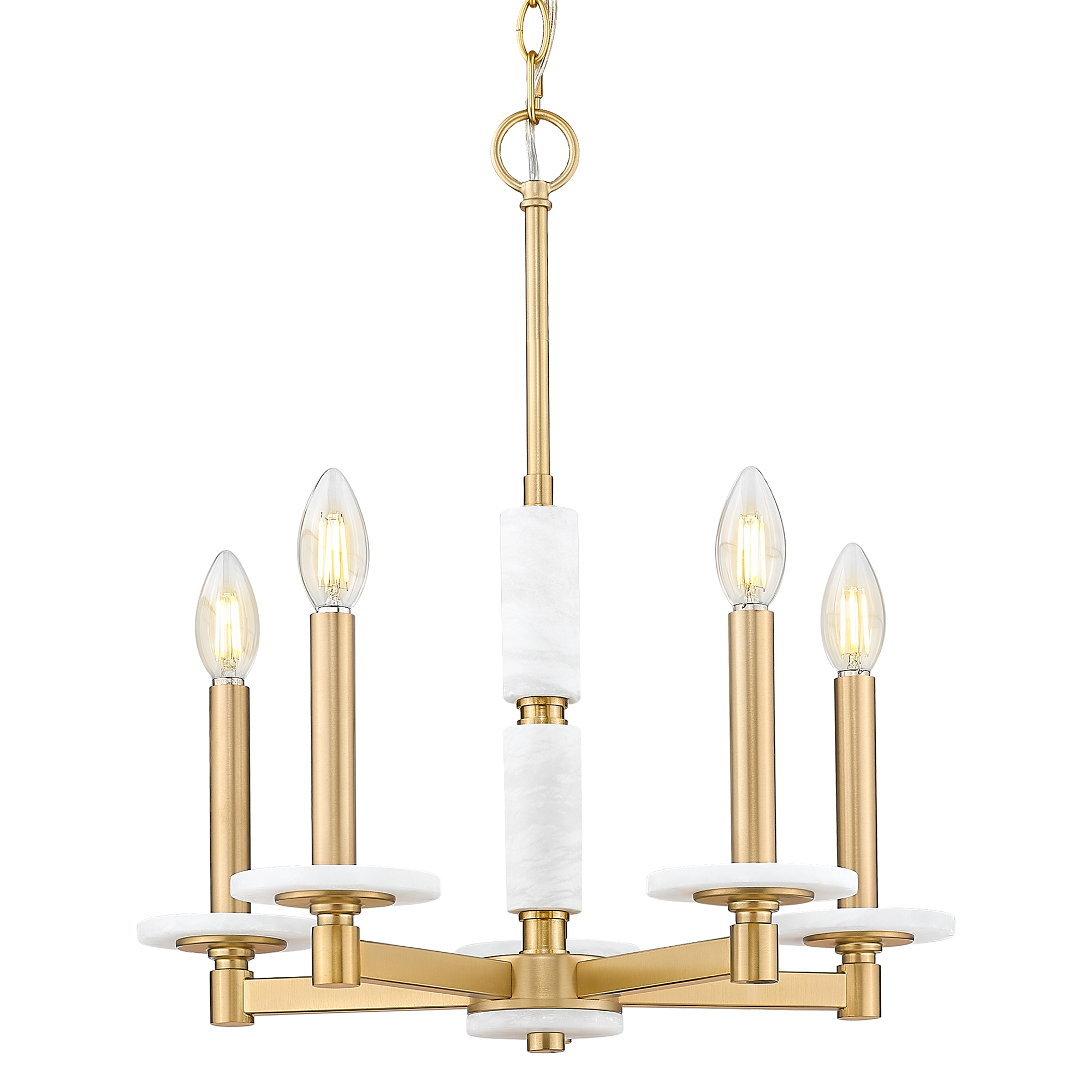 The Kaden Chandelier features a classic candle design, fitted with striking alabaster stone accents. Its round form makes a refined statement for a kitchen or dining room, providing soft light with a touch of modern artistry.