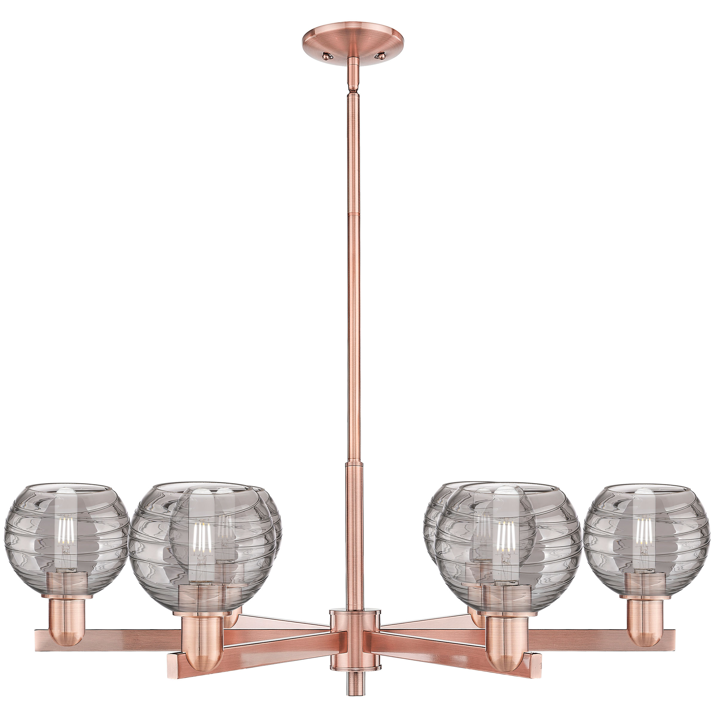 The Athens Arcadia Deco Swirl Large Chandelier showcases light smoke glass shades. Sleek and modern arms add an elevated style and support the sturdy glass shades. Perfect for a kitchen or dining room.