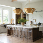Remarkably dramatic, the Reina Chandelier's repeating flared fronds surround its central drum and etched white glass diffuser, making a refined yet striking statement within any space.