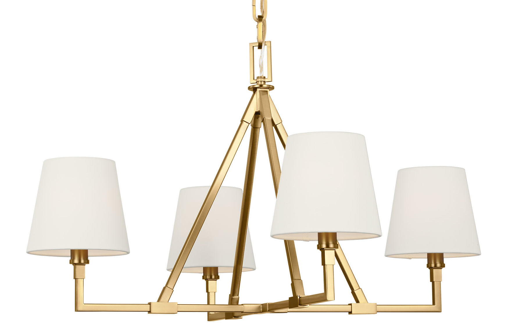 The Perth Chandelier adds a touch of understated elegance to your interior space. Its slender frame supports cone-shaped linen shades that softly diffuses light, casting warm, inviting shadows throughout your room.