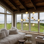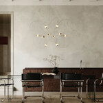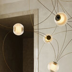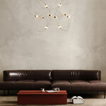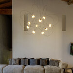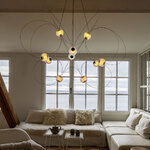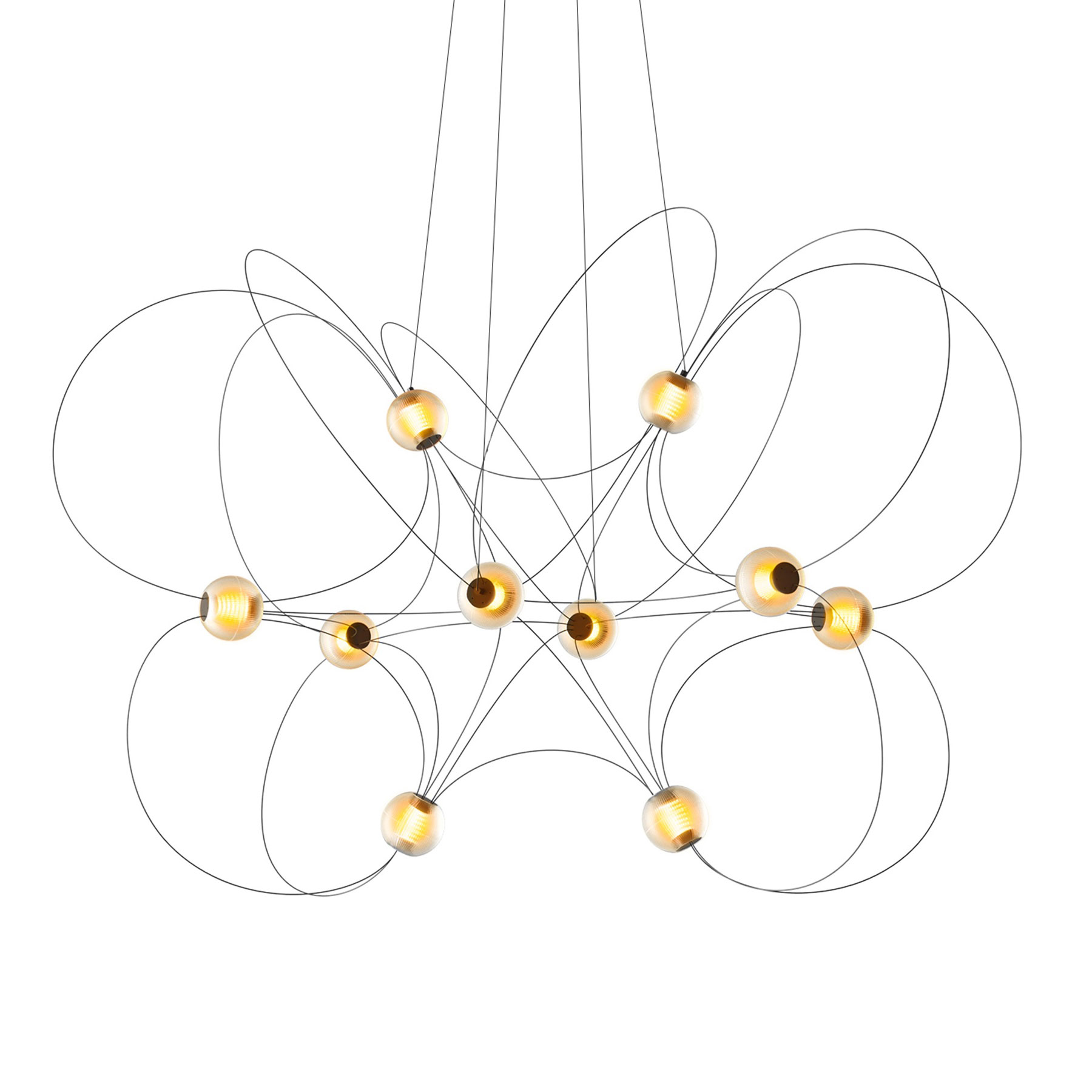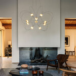 The Munari 10 Chandelier puts on a dazzling display with its array of illuminated orbs linked by a curving frame of thin rods. Munari's sleek, organic lines evoke the elliptical orbit of planets or the random path of a butterfly in flight. Install a grouping of multiple pendants together for a particularly stunning display. TRIAC dimmable.