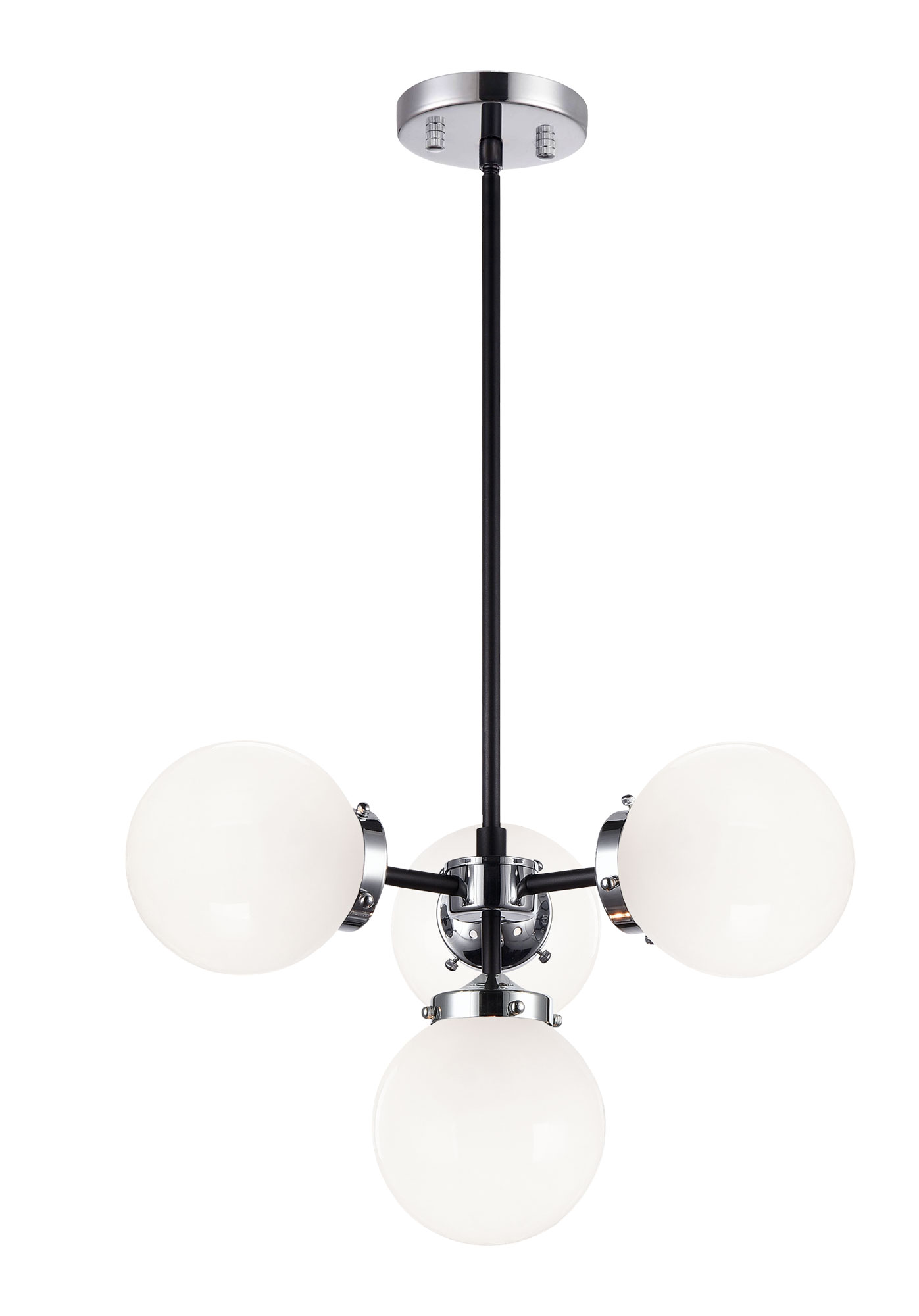 Maru Chandelier brings a mid-century vibe to any room of your home. Available with an Opal or Clear glass shade and a Matte Black with Aged Gold Brass or Matte Black with Chrome finish in 4 and 10 light options. Includes 12 feet of wire and one 6 inch and three 12 inch rods to customize length.