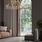 The Dennison Chandelier offers a sleek, wagon-wheel inspired design that will have a dramatic effect with its large scale. Circular double rings framed with candleholders are nested for a two-tier effect. Perfect for a dining room or great room.