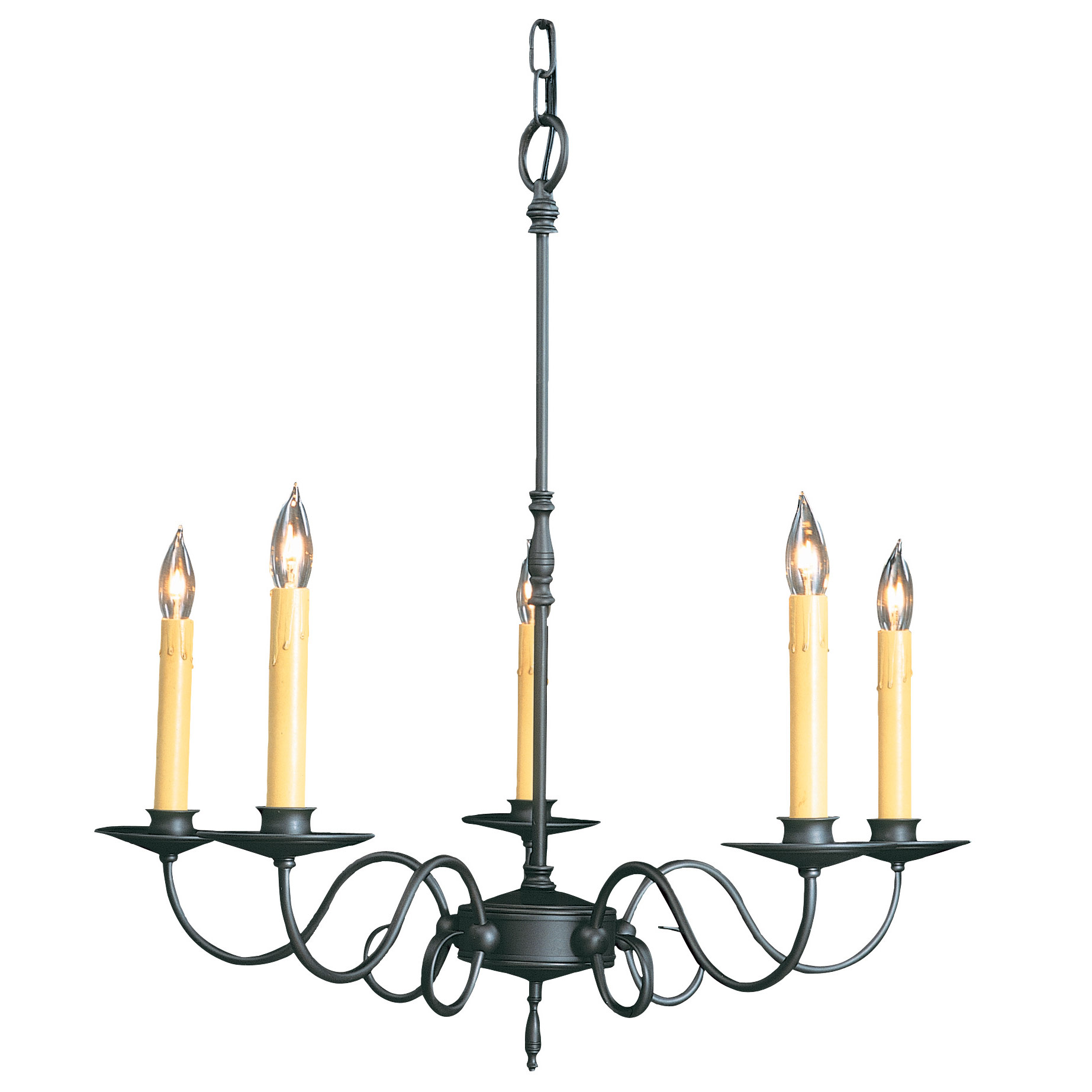 The Black Forest Chandelier offers a classic bucolic design that will be welcome in farmhouse and transitional surroundings. Features faux beeswax candles with hand rubbed Charcoal finish. Choose from five or nine light option. Includes three foot chain. Canopy: 4.75 inch diameter. UL/CUL listed. Made in the USA.