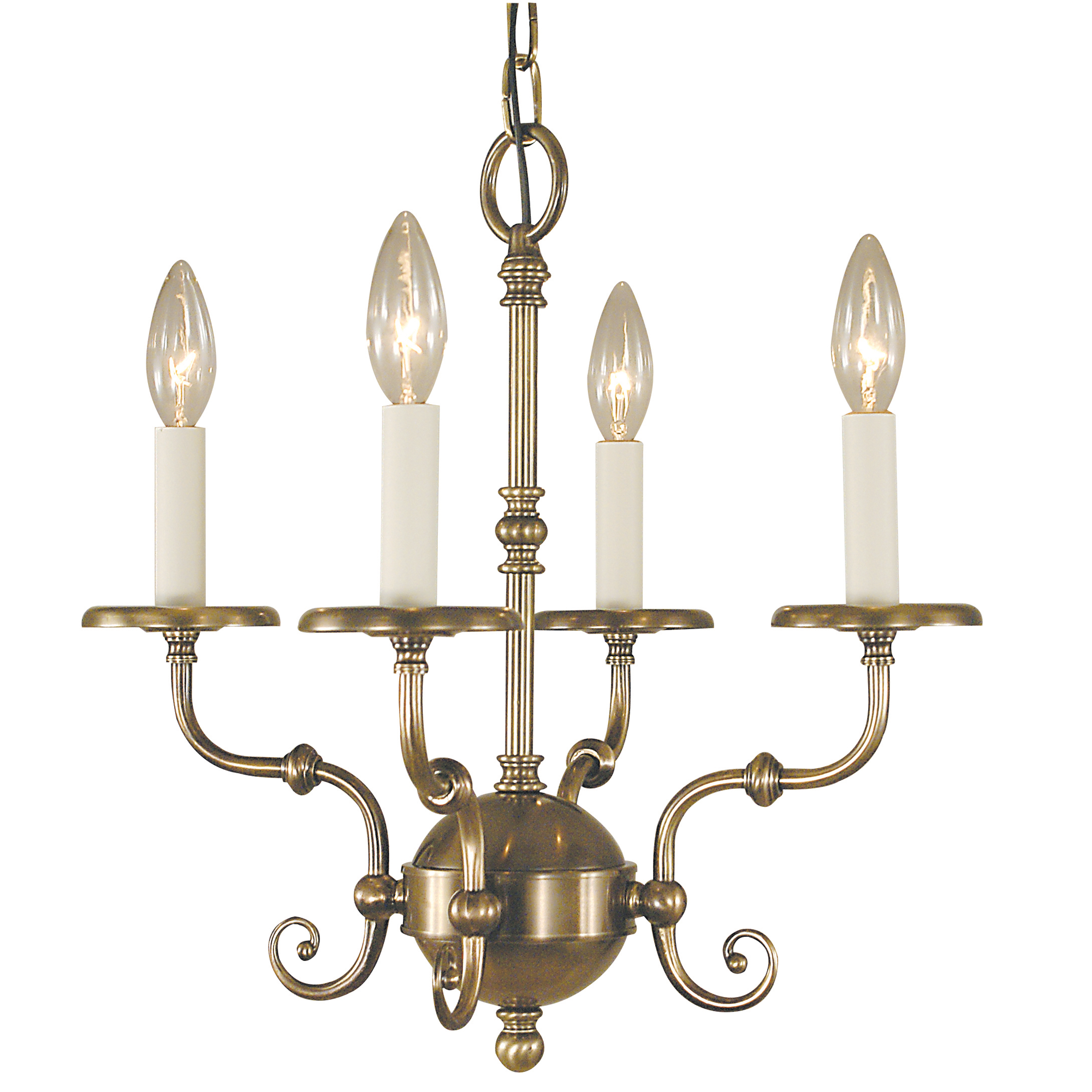 The Jamestown Revisited Chandelier's traditional design boasts elegant details and a sleek profile. From a centerpoint, a collection of candlestick arms gently curve up to house a bulb that gently sets off illumination. Place the Jamestown anyplace in the home where Statement lighting is needed. Available in Brushed Nickel, Antique Brass, or Sienna Bronze. Configured with 4, or 5 lights. UL Listed. .