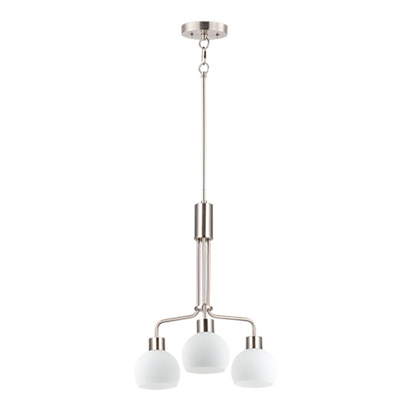 The Coraline Chandelier puts a modern spin on farmhouse design. Satin White glass domes suspend from individually distributed tube arms to give the Coraline it's unique look. Place in either a modern, transitional, or farmhouse setting and let the light shine.