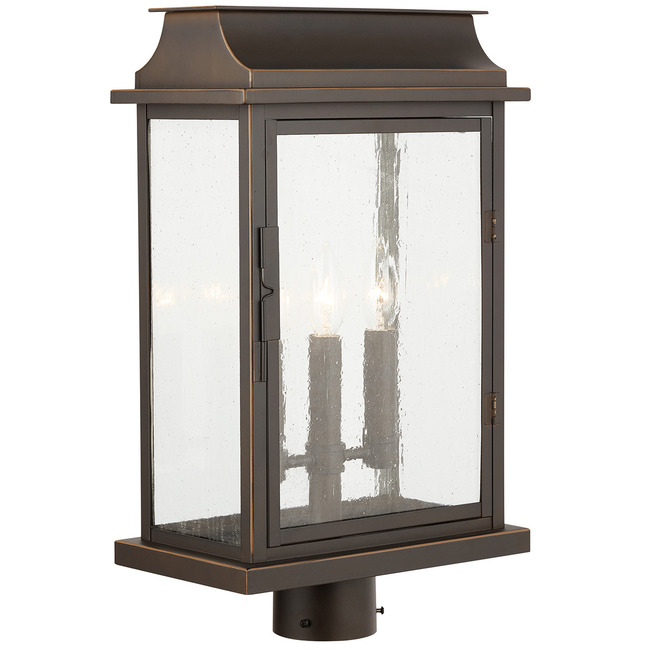 The Bolton Outdoor Post Light adds a clean traditional presence to your exterior space with its lantern design. The Antique Glass is complemented by simple lines in rich Oiled Bronze. Hinged door for easy re lamping. Note: Standard 3 inch post or pier mount is required, and sold separately.
