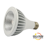 The Sunlight2 PAR30 Long Neck is an architectural-grade medium base LED bulb featuring low blue emission and no flicker. Designed with Dim-to-Warm (3000K-1800K) color temperature, SunLight2 gradually changes from 3000K color temperature to a warm 1800K sunset ambiance. Phase dimming 100%-1%.
