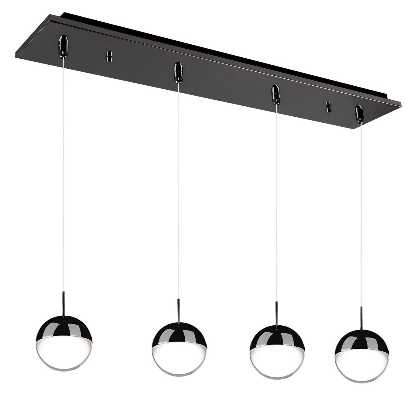 The Pluto Linear Multi Light Pendant adds a timeless elegance to your interior space. Each sphere is divided at the equator, where a sleek metal frame meets a glass diffuser, casting soft, warm shadows throughout your room.