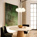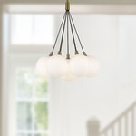 The Bolla Chandelier brings a clean elegance to your interior space. The sleek patent pending socket design holds airy, cloud like glass globes together as one piece, that casts warm shadows of light across your room.