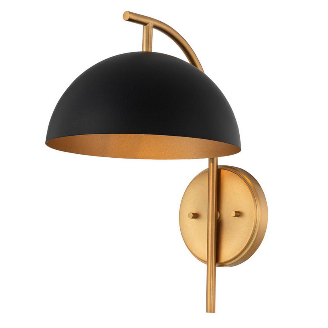 The Marcel Wall Sconce features a dome shaped shade with a New Brass interior color with a Matte Black finish. ETL listed for Damp.