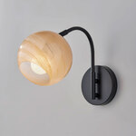 Add warmth and timeless style to your space with the Nolan Wall Sconce. For symmetrical design, pair two of these sconces on either side of beds, fireplaces, or mirrors or place individually in entryways or other spaces for a pop of light. A round base crafted of black metal supports a slender arcing stem, and suspended from the stem is a stunning glass globe with an eye-catching beige swirl pattern that throws warm light. For versatile lighting options, an articulation point at the base of the glass globe allows you adjust the shade, directing the light wherever it's needed.
