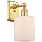 The Cobbleskill Wall Sconce features an elegant and refined aesthetic that will complement a variety of interior decor styles. The cylindrical glass shade is supported by a rectangular backplate and adjustable bracket arm that easily allows the shade to be pointed up or down.