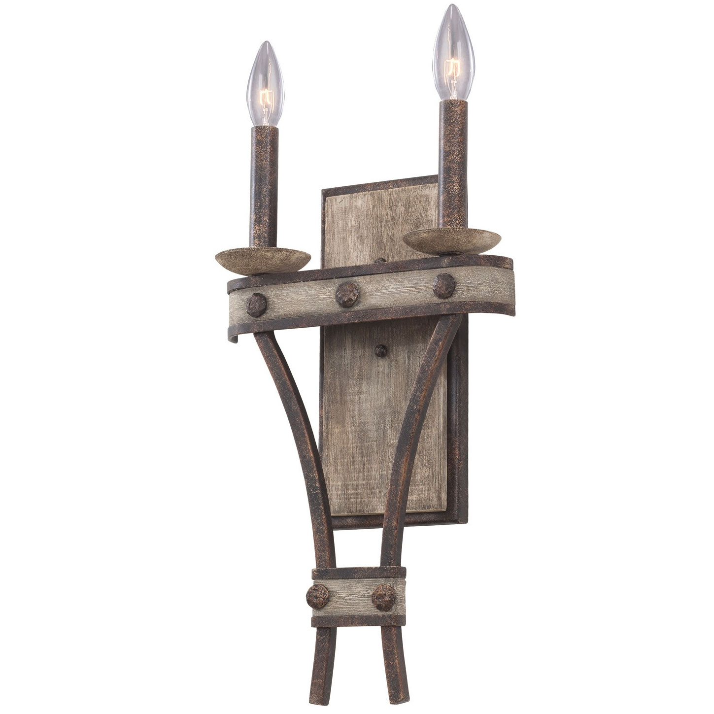The Coronado Wall Sconce features a hand finished wrought iron frame in Florence Gold finish with solid wood accents.