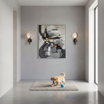 The Bolla Wall Light radiates unique allure through its innovative design, seamlessly combining a half-acid white and half-ribbed smoke glass sphere. The wall light's interplay of textures and tones establishes a visually striking focal point, effortlessly merging contemporary aesthetics with enduring charm. This unique glassware is complimented with a semi gloss black frame.